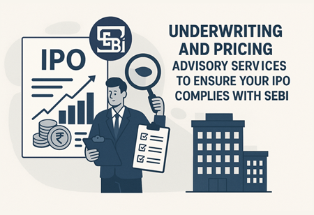Our expert team provides underwriting and pricing advisory services to ensure your IPO complies with SEBI (Underwriters) Regulations, 1993. We help structure strategies to meet SEBI’s 100% underwriting requirements and advise on setting the optimal issue price based on your company’s financials and market conditions.